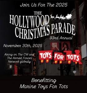 A cherished tradition since 1928, The 93rd Anniversary of The Hollywood Christmas Parade Supporting Marine Toys for Tots, will kick off the holiday season with spectacular fanfare including movie cars, award-winning bands from around the country, dazzling equestrians, larger-than-life character balloons, colorful floats, and humorous specialty acts, culminating with the appearance of the Jolly Old Elf himself, Santa Claus and his reindeer.