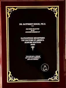 Dr. Satpreet Singh, PhD, Selected for Permanent USA Nationwide Registry Recognition in Leadership and Sustainability